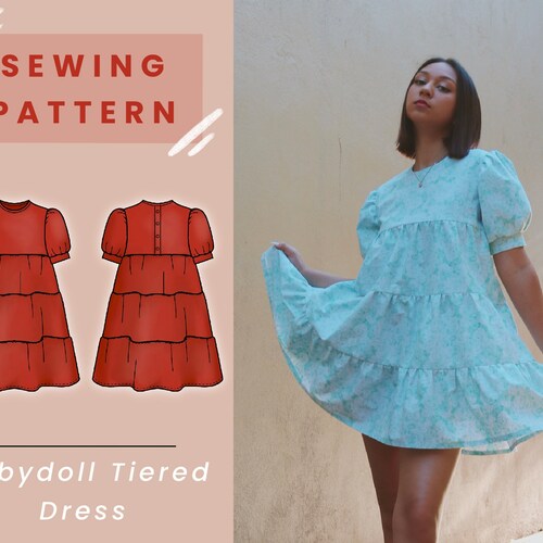 Babydoll Tiered Puff Sleeve Dress Digital Pdf Sewing Pattern Etsy